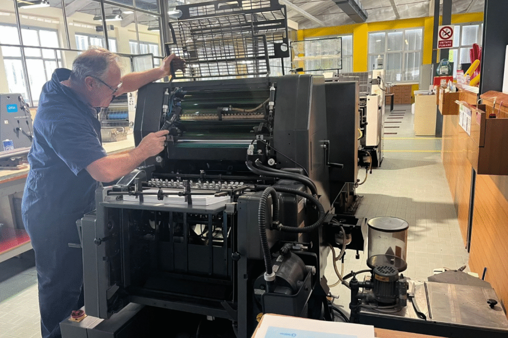 Matbaa Öğretmeni Mustafa Kemal BAĞDATLI; BASEV Yönetim Kurulu Üyesi Özgür ÇETİNKAYA’nın Lideri olduğu BASEV Etiket Bobin Baskı Çalışma Grubu projesi ile BASEV Sponsorluğunda, Türkiye ve İtalya’daki matbaacılık eğitimlerini karşılaştırmak üzere gerçekleştirdiği İtalya ziyaretinde, mesleki eğitim sistemlerini yerinde gözlemleme fırsatı buldu.
